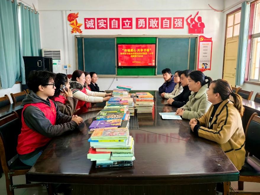 11月16日上午10点,beat365唯一官网校团委王颖璇科长带领校团委负责老师和学生代表前往西村镇第一小学进行“传递爱心 共享书香”图书捐赠活动。