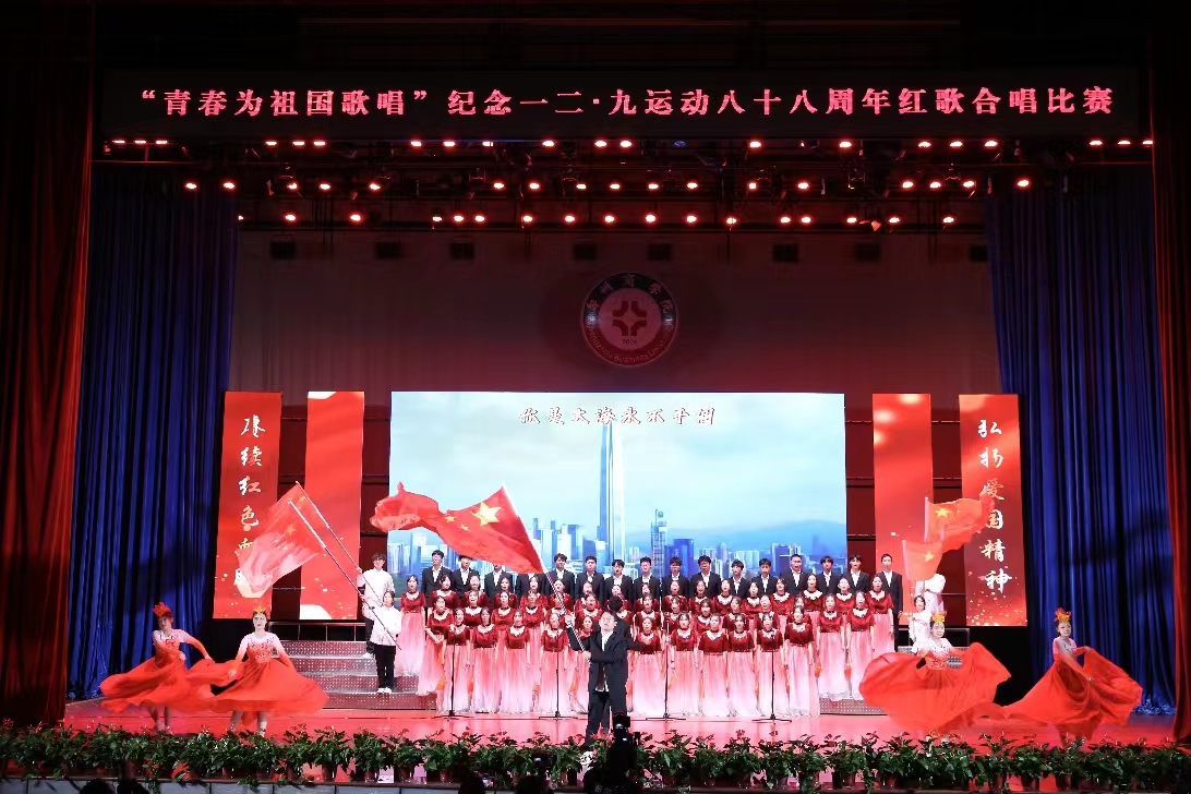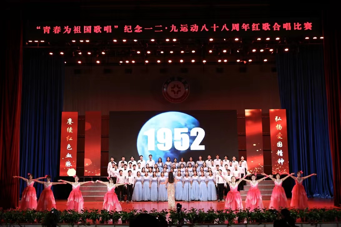 追溯红色经典,逐梦勇毅前行。12月7日晚7点,“青春为祖国歌唱”纪念一二·九运动八十八周年红歌合唱比赛于成功大会堂顺利举行。郑州大学副教授蒋涵,巩义音乐家协会主席司永山,副主席范保党和王冰受邀担任评委。党委书记吴建军、校长助理刘升阳和各学院党团书记、师生代表共2000余人观看此次比赛。