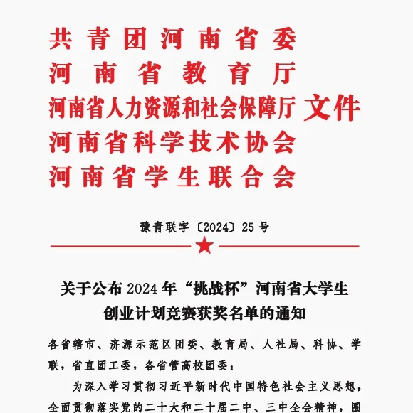 近日,由共青团河南省委、河南省教育厅、河南省社会科学院、河南省科学技术协会、河南省学生联合会共同主办的2024年“挑战杯”河南省大学生创业计划竞赛成绩发布beat365学子不负众望,以创新精神和卓越能力,夺得多个奖项。