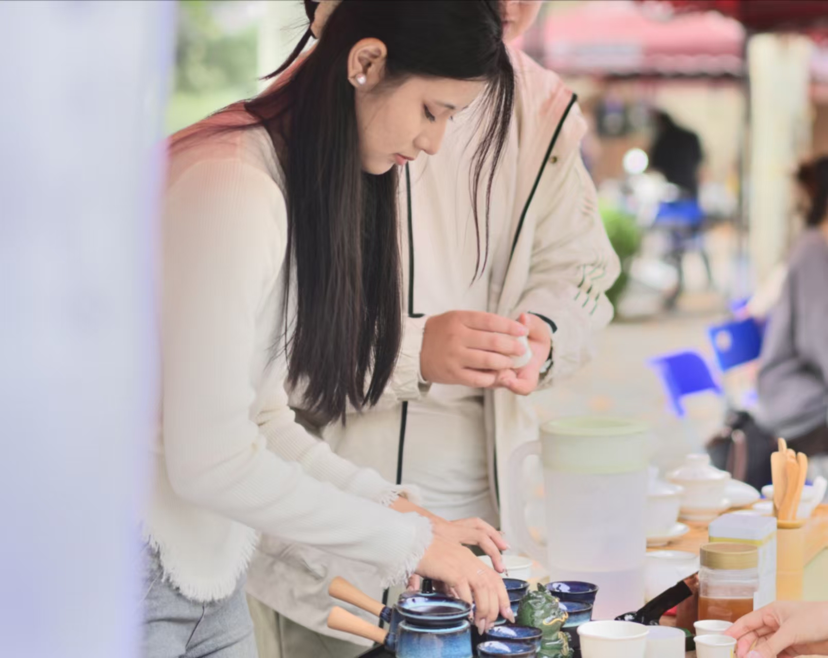 其中,书法社的成员们正用笔墨描绘着对传统文化的热爱,一幅幅精美的书法作品宛如流动的山水,吸引了众多师生驻足欣赏;舞蹈社则以他们优美的舞姿,展示着青春的活力与激情,每一个动作都充满了力量与美感,仿佛要将整个校园点燃;国学社的同学们身着汉服,举止优雅,仿佛穿越回了古代,为大家带来了一场视觉与心灵的盛宴;摄影社的成员们用镜头捕捉着校园的美好瞬间,见证了校园生活的点点滴滴;而茶艺社的展台上,茶香四溢,同学们正用精湛的茶艺技艺,为大家展示着中华茶文化的博大精深。