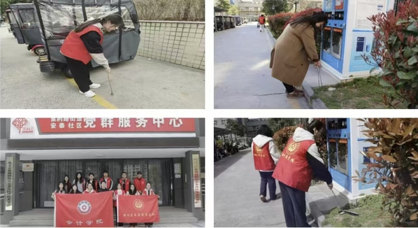各学院积极开展环保类实践活动,助力社区环境改善。管理学院组织了“手植一片绿,心连万里春”“绿动心声,共植希望”等活动,在学院社区和政通社区,同学们学习植树知识并参与植树,还向居民普及树木养护知识,增强了居民的环保意识,为社区增添绿色。机电学院开展“学生志愿进社区,卫生清扫展新颜”活动,志愿者们在白云社区认真清理垃圾,改善了社区环境卫生,提升了居民的环保认识。外语学院的“志愿清扫社区,雷锋点亮文明”“清洁街道焕新颜,携手共建美家园”活动,以及文传学院的“春‘锋’行动进社区,环境美化展担当”活动,都致力于社区环境的清洁与美化,引导居民养成良好卫生习惯,营造了干净整洁的社区环境。
