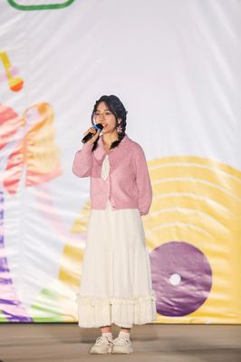 当追光柱劈开黑暗,握着话筒的指尖都在发光。高音像窜天猴直冲穹顶,抒情片段连空气都变成粉色泡泡。郑商学子在歌声中欢呼,一起推动这场视听盛典走向高潮!