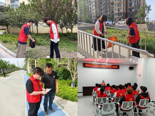 金贸学院多次组织社区清洁活动,为改善社区环境贡献力量。4月11日在政通社区开展的“清洁家园,美化环境”活动,以及4月25日在同一社区开展的“清洁家园,你我共建”活动中,志愿者们身着红马甲,手持清洁工具,认真清理社区道路、绿化带、卫生死角的垃圾。他们不怕脏、不怕累,用实际行动诠释环保理念,带动社区居民增强环保意识,共同参与到环境整治中来。经过志愿者们的努力,社区环境得到明显改善,变得更加整洁美观。机电学院在环保行动中充分发挥专业优势。4月8日,志愿者团队走进祥瑞社区,开展垃圾分类指导和民法典宣传等实践活动。学生们运用机械测绘、工程制图等专业知识,手绘社区回收点分布图,方便居民进行垃圾分类投放。同时,他们还结合实训课经验,用实物演示高空抛物的危害,向居民普及环保和法律知识。4月16日,机电学院志愿者再次走进祥瑞社区,开展安全教育及垃圾分类宣传活动。他们为社区居民讲解防火、防盗、防诈骗等安全知识的同时,强调垃圾分类的重要性,帮助居民养成良好的生活习惯,提升社区的整体环境质量。4月25日,艺术学院在桐和社区,志愿者们在开展主题讲座、参观红色老物件后,分成小组前往各个单元楼进行环境卫生清理工作。他们认真打扫楼道垃圾,清理堆积的废纸箱,清扫社区草坪,使社区环境焕然一新。