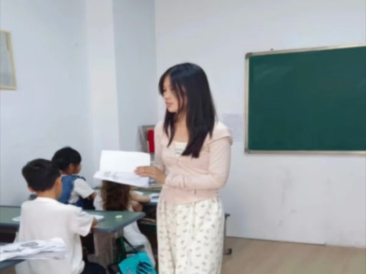 我是来自24学教专升本2班的李娟,我的实践地点是在社区附近的暑托班机构。这不仅是一段充满挑战与温暖的经历,也让我在这段经历中学到了很多教学经验。课程要贴合他们的认知节奏:生字认读变成“汉字寻宝”游戏,数学题藏在卡通贴纸背后,英语课要结合图片、视频和律动,让孩子们体会英语的乐趣。课堂管理得用“孩子的逻辑”:有人上课玩橡皮,要将“不许玩”换成“橡皮宝宝想让你先听老师讲,不然它会难过的。”两个男生为争座位吵架,我让他们轮流当“小班长”维持秩序,没过多久就看到他们凑在一起分享漫画。这些小技巧,比严厉的批评管用得多,细节里藏着责任。