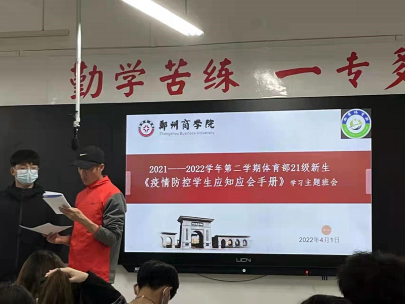 为进一步做好新冠肺炎疫情防控工作,普及新冠肺炎防控知识,增强同学们疫情防控意识,切实提升同学们的自我防护能力,同时培养学生安全学习和健康生活的意识,体育部各辅导员于41日——3日开展了疫情防控知识与技能培训的主题班会。