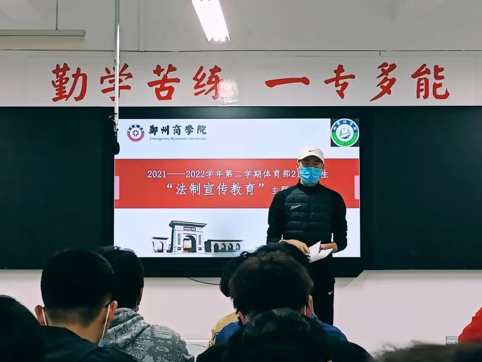 为加强大学生法治教育,使我部学生充分认识遵纪守法的必要性和违法犯罪的危害性,4月18日-19日体育部在各班召开法治教育宣传主题班会。