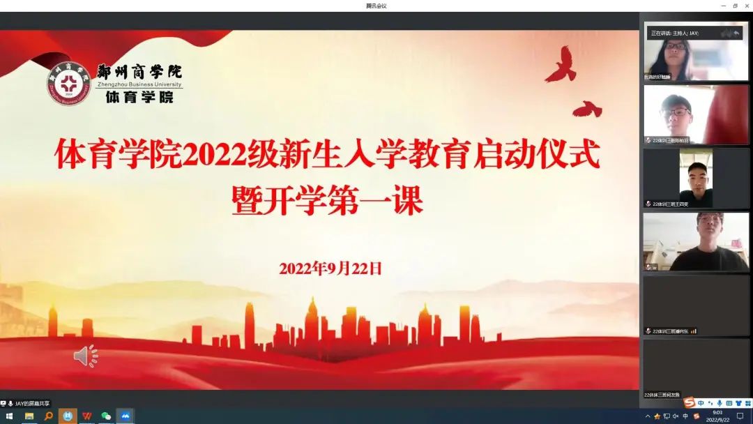 为帮助2022级新生了解、适应、融入大学生活,引领学生立大志、树长志,扣好大学生活的第一粒扣子,顺利迈入大学新阶段。9月22日上午,体育学院召开线上新生入学教育启动仪式暨开学第一课。300余名新生齐齐上线,在云端教室如期开启入学教育之旅。