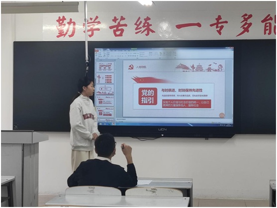 会上,入党积极分子们依次以PPT的形式,从自我介绍、思想、学习、工作、生活等方面进行汇报。评审老师结合答辩同学的汇报内容,随机提问,问题围绕党的理论知识、时事政治以及大学生日常生活中遇到的热点问题,充分考察了发展对象的理论水平以及对社会热点的观察和分析能力。答辩评委依据汇报内容、答辩表现对每个答辩对象进行认真评分。