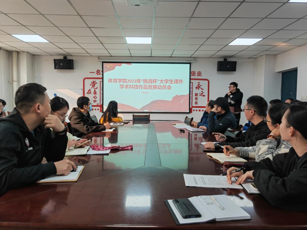 为提高全院学生的自主创新能力,营造科研学术氛围,进一步发挥“挑战杯”的竞赛的育人作用,体育学院于2月23日在体育馆会议室举行了“2023年‘挑战杯’大学生课外学术科技作品竞赛动员会”,体育学院院长张元通、党委书记牛晓峰、团委书记傅锦涛、全体教师及辅导员参加了此次动员会。