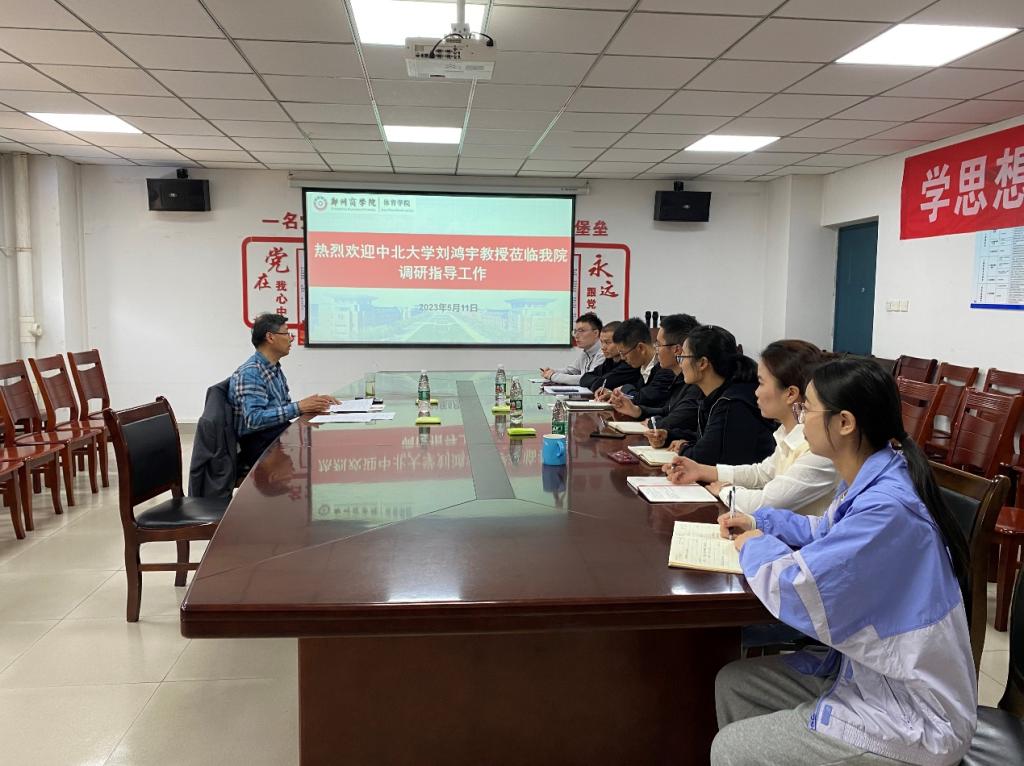 5月11日,中北大学运动医学研究所所长、中国解剖学会运动解剖学分会主任委员刘鸿宇教授莅临我院调研指导工作。院长张元通、院党委书记牛晓峰、休闲体育教研室主任郑辉、运动康复教研室主任张增佳及教师代表参与了交流活动。