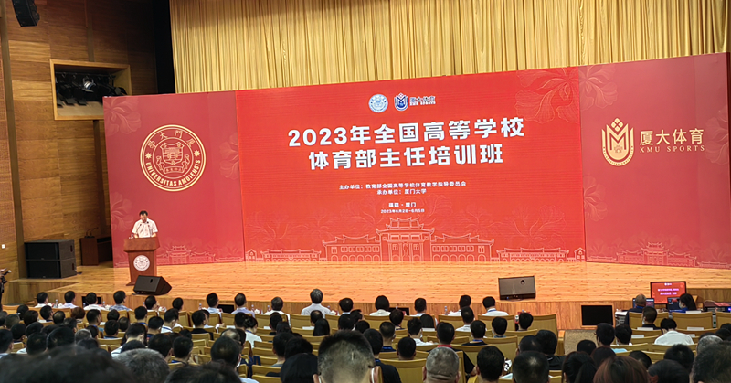 为贯彻落实党的二十大精神,加快建设体育强国,深化体育教学综合改革,6月2日至5日,全国高等学校体育工作高质量发展研讨会暨全国高等学校体育部主任培训班在厦门大学举行,本次活动由教育部全国高等学校体育教学指导委员会主办,厦门大学承办,来自全国430所高校的700余名学校体育相关负责人参会。我院院长张元通及公体教研室主任郭浩参加了此次会议。