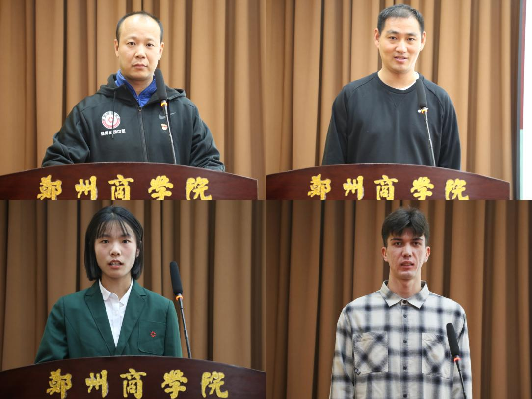 其次,校级运动队教练员临时党支部书记赵咏、校级运动队教练员顾全、河南省第十四届运动会获奖队员代表、校级运动队学生代表分别进行发言。