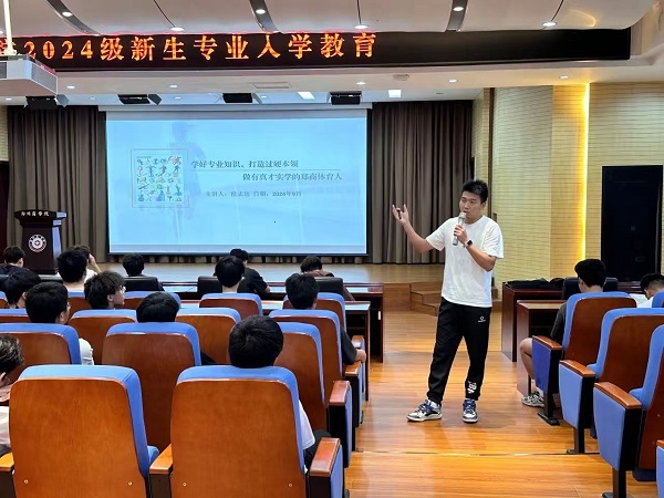 为了使2024级新生尽快融入大学生活,尽早明确人生的学习目标和方向,了解自己大学四年的培养目标和毕业要求。9月27日下午,体育学院在图书馆五楼报告厅开展专业教育会议,2024级全体新生参加了此次会议。