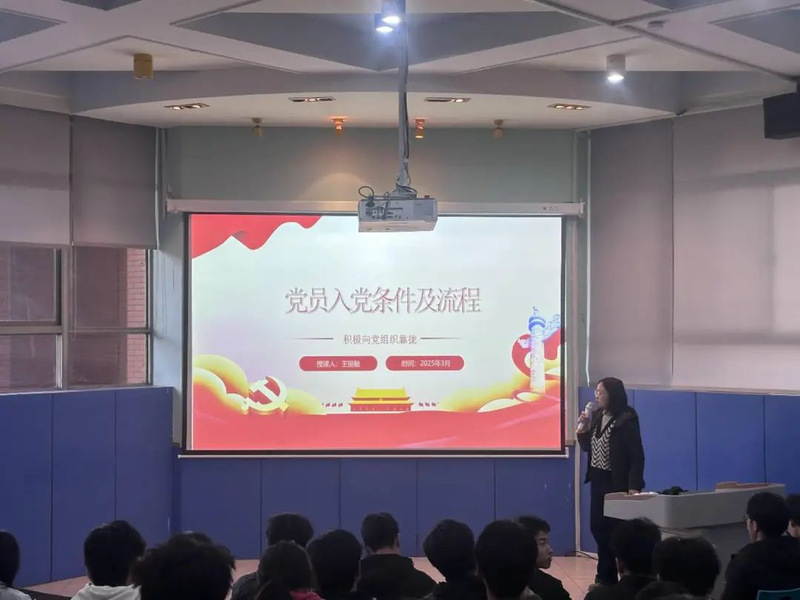 课程伊始,王丽敏老师详细地介绍了发展党员的工作方针及工作准则,让入党申请人对党员发展有了初步的了解。接着,王老师结合我院党员发展工作实际,从入党条件、入党积极分子确定和培训教育、发展对象的确定和考察、预备党员的接收、预备党员的教育、考察和转正等方面做了详细的介绍,引导入党积极分子们积极向党组织靠拢,做到不忘初心,砥砺前行,勇当先锋。