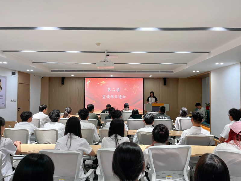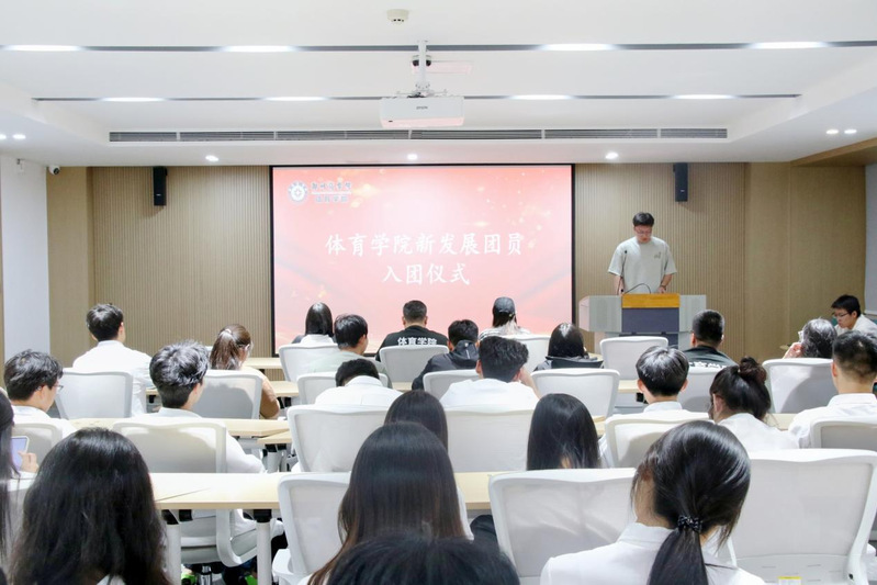 此次仪式在庄严的团歌声中拉开帷幕,全体师生起立奏唱团歌,展现了团员青年的青春活力和对共青团的热爱。仪式上,王丽敏老师宣读了结业通知,并对学员们在团校培训中取得的成绩给予了高度评价。随后,仝燕平老师为新团员代表颁发了结业证书,丁震霆书记为46名新团员佩戴了团徽,象征着他们正式成为共青团的一员。在入团宣誓环节,新团员们在王莎莎同学的带领下,面向团旗庄严宣誓,表达了他们对共青团的忠诚和为共产主义事业奋斗的决心。最后,团委书记丁震霆老师作总结讲话。他首先对本期团校的成功举办表示祝贺,并对全体学员提出了殷切希望。他强调,团校的结业不是终点,而是新征程的起点,希望学员们将团校所学融入到日常生活中,争做有理想、敢担当、能吃苦、肯奋斗的新时代体育青年。