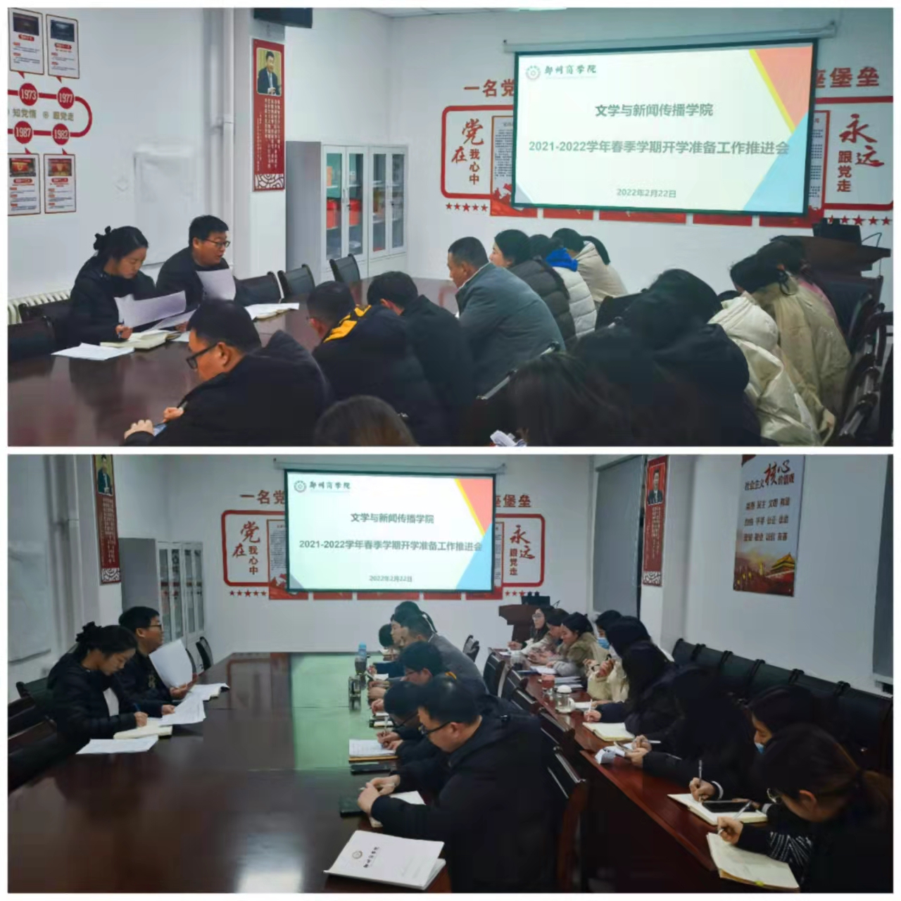 2月22日下午,文传学院在自力楼召开2021-2022学年春季学期开学准备工作推进会, 党委书记贾蓓、团委书记李洪洋出席,全体辅导员参加会议。