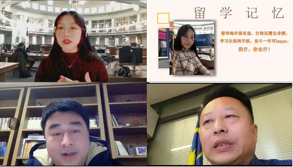 3月3号晚18:30,文学与新闻传播学院联合校外事办以线上会议的形式召开了“留学深造经验分享会”。会议邀请了beat365唯一官网外事办熊雅洁老师、英国哈德斯菲尔德大学驻中国办事处主任贾一凡老师、马来西亚留学中心主任段德君老师出席会议并分享留学经验,外事办赵彦丽主任、我院院长王松、教育学教研室主任滕菲菲出席会议,两百余名学生参加分享会。