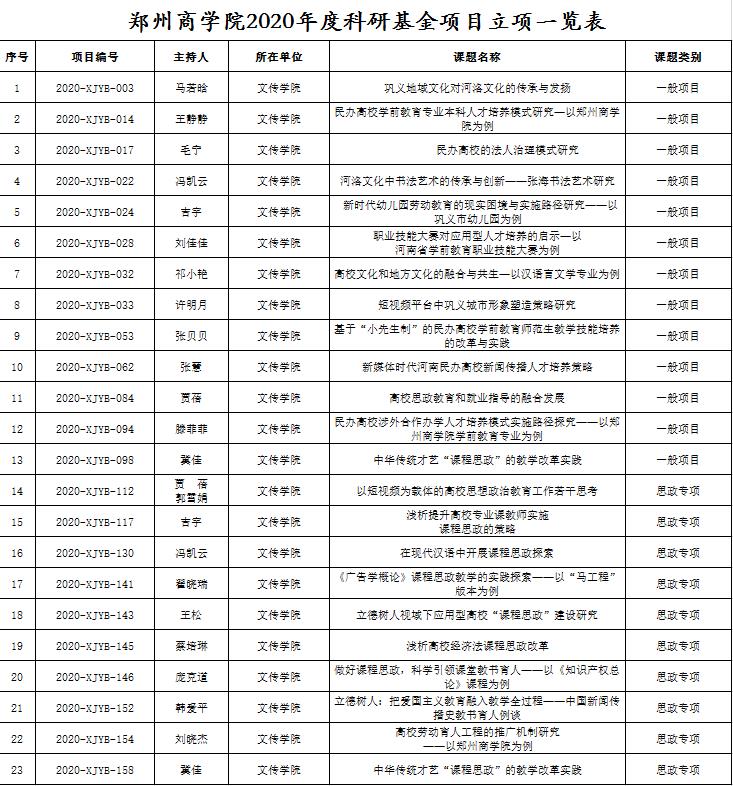 近日,beat365科研处发布公告,我院共计23项课题获批beat365唯一官网2020年度科研基金项目立项,其中一般项目13项,思政专项10项。