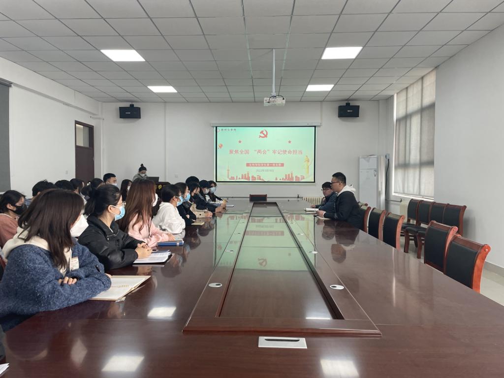 会议上,首先由支部宣传委员王心怡同志召开“聚焦全国两会,牢记使命担当”的主题会议,引导大家关注两会,积极学习两会基本知识。随后支部书记王凯文老师讲话,呼吁大家加强学习强国的学习,多多关注身边实事,加强对时政热点的学习,在“我为师生办实事”这一事宜上,倡导各位学生党员转变办事思维,创新办事方法,紧跟党委指示要求,积极主动参加活动。同时,在纪律方面,王凯文老师要求各位学生党员在做好自身疫情防控管理的同时,还要提高站位,积极配合学院和老师的工作安排,提醒各位学生党员及时关注关于学校方面的舆论舆情,以及周围同学的身体和心理健康状况,做到及时为同学们排忧解难,做一名合格的共产党员。