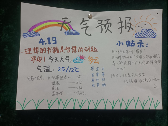 正值春夏换季,温度变化无常,文传学院学生第五党支部开展以“我为师生办实事——天气暖心小贴士”为主题的实践活动,以实际行动为师生服务。