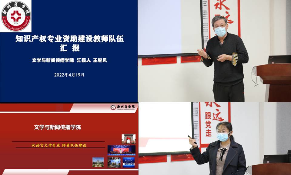 法学教研室主任王继风老师、文学教研室翟丽娜老师分别就知识产权专业资助建设教师队伍建设情况和汉语言文学专业师资队伍建设情况进行了详细汇报。