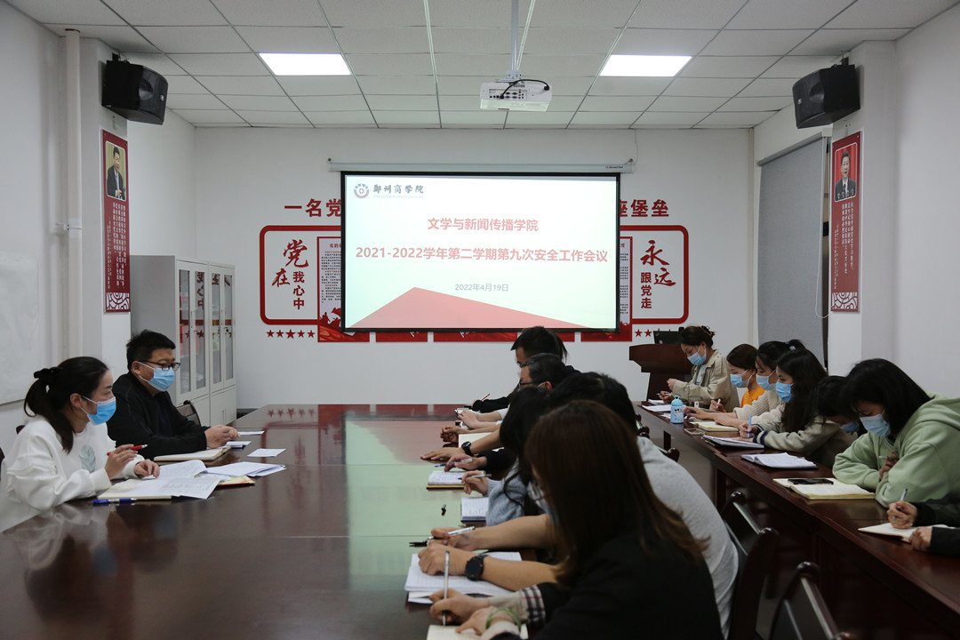 为进一步加强安全稳定,巩固疫情防控工作,4月19日下午,文传学院召开“2021-2022学年第二学期第九次安全工作会议”,党委书记贾蓓、团委书记李洪洋出席,全体辅导员参会。