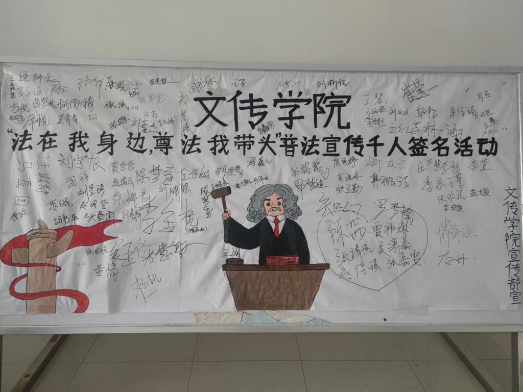 为切实提高学生法治意识,增强法治观念,营造浓厚法治教育知识学习氛围,我院于2022年4月20日于自力楼门前开展“法在我身边,尊法我带头”普法宣传千人签字活动。