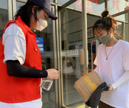 活动开始,小组成员分配好值班时间,在各个时间段在东校区快递站点门口和各个宿舍楼下,为领快递的同学进行消杀工作,并告诉同学们及时对快递进行消毒的重要性。此次活动中,充分发挥党员干部的鼓舞作用、带头作用和模范作用,也为本校师生展现了我院新时代大学生党员的良好精神风貌。