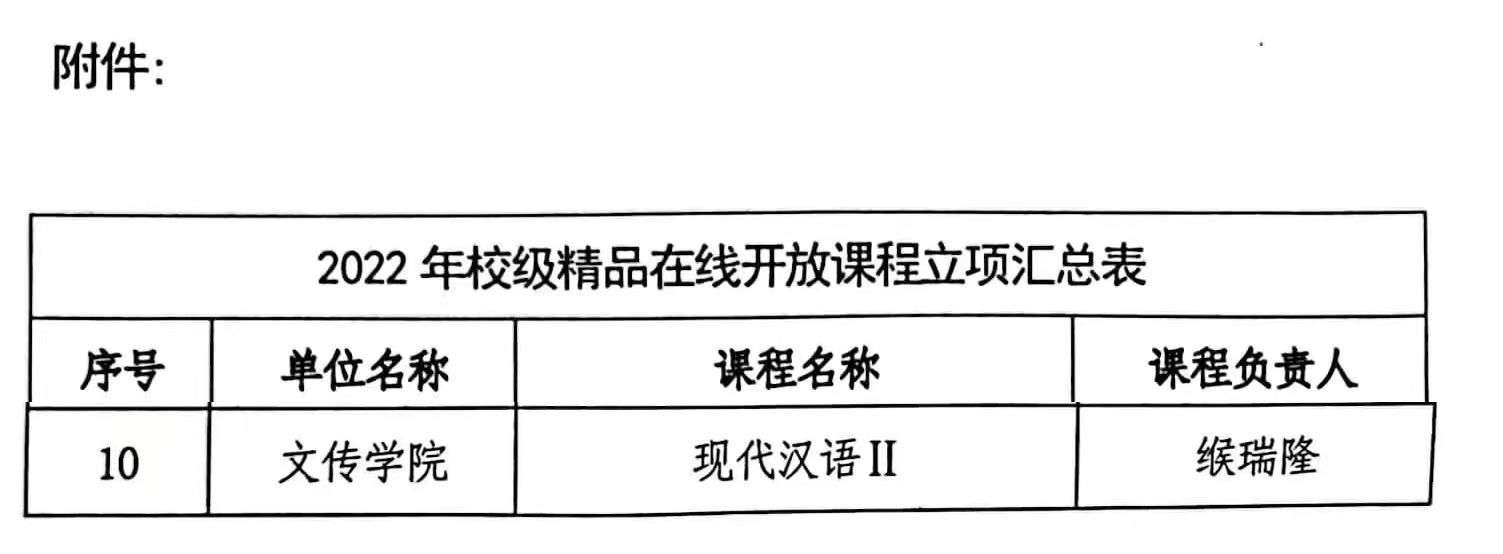 近日,beat365下发通知,由我院缑瑞隆教授教学团队负责建设的在线课程《现代汉语II》获批立项成为beat3652022校级精品在线开放课程。