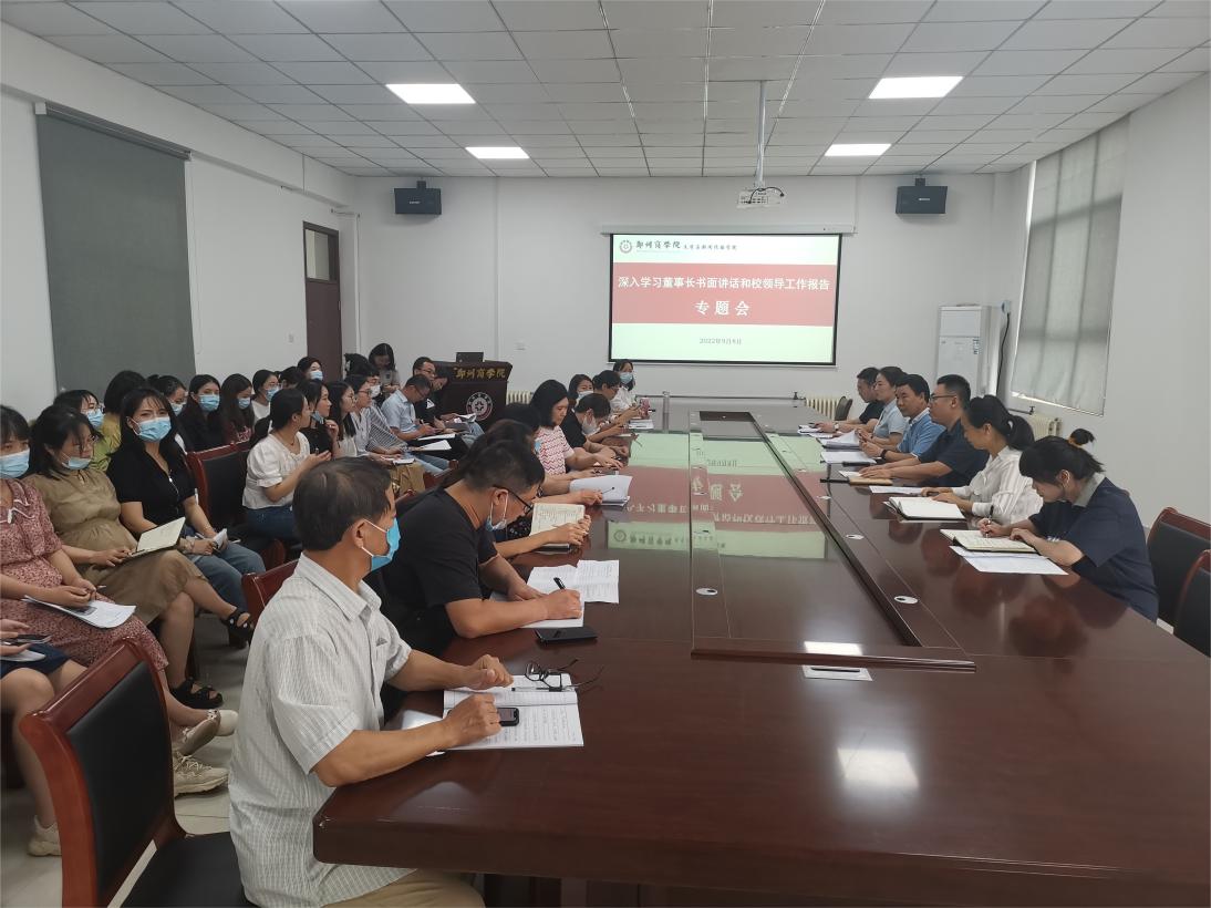 专题学习会议上,张慧副院长宣读董事长王育华在2022-2023学年第一学期全体教职工大会上的书面讲话。贾蓓书记领学党委书记马书臣在2022-2023学年第一学期全体教职工大会上的党委工作报告。王松院长领学校长吴泽强在2022-2023学年第一学期全体教职工大会上的校务工作报告。