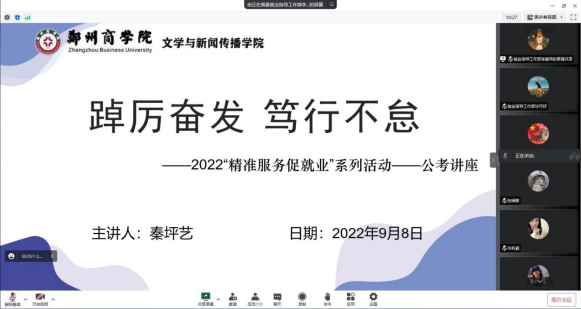 2022年9月8日晚,我院顺利开展“精准服务促就业”系列活动——公考讲座。