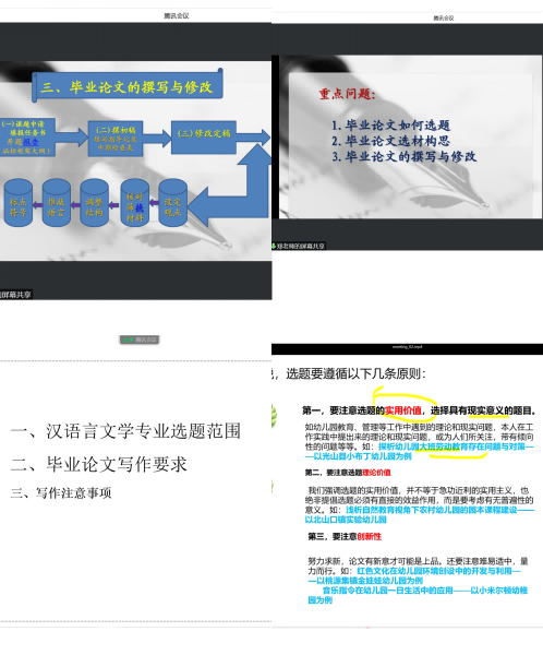 文传学院各教研室论文指导会议帮助学生做好毕业论文工作打好了第一枪,为学生能够“开的题,写的出、逻辑通、查重低、答辩过”保驾护航。此次毕业论文选题线上动员会的成功召开,有助于我院毕业论文工作的顺利实施,帮助同学们正确认识、理解并开展毕业论文工作。