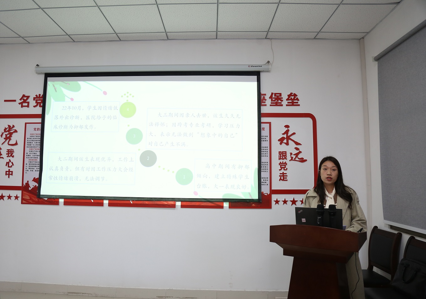 心理健康教育工作是辅导员工作职责中的一项内容,在日常学生工作中如何开展心理健康教育工作,是辅导员必备的一项技能。10月11日下午,我院开展了学生工作思政队伍建设“一周一案例”第八讲,本次分享由辅导员潘亚萍老师主讲。