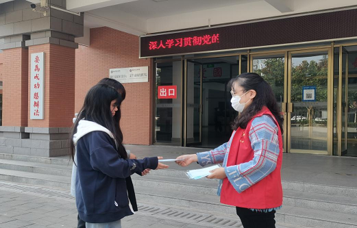 当前,新冠肺炎疫情卷土重来,疫情防控形势复杂严峻,个人防护措施时刻不能松懈。为进一步加强校园疫情防控,增强我院师生佩戴口罩意识,引导我院师生养成随身携带口罩、科学佩戴口罩的良好习惯。2022年10月24日,文传学院学生第七党支部结合学校党史学习教育,开展了“助力疫情防控,文明实践在行动”的主题党日实践活动,以加强防疫宣传,助力校园防控工作。