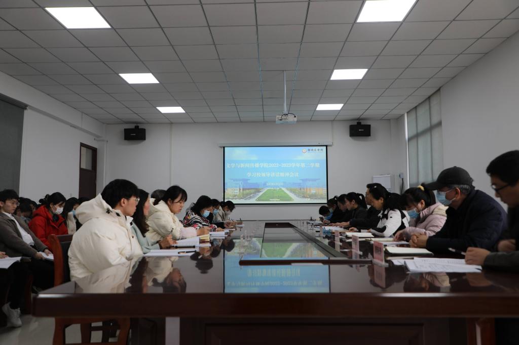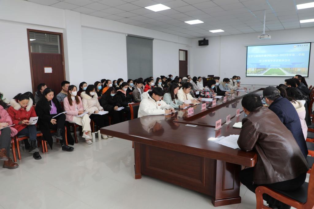 为了深入学习校领导在期初全体教职工大会上的讲话精神,贯彻落实学校发展规划,文学与新闻传播学院与2月16日下午在自力楼216召开2022-2023学年第二学期学习校领导讲话精神会议。我院全体教职工参加会议。校长助理张江涛、科研处处长刘志飞参加会议并讲话。