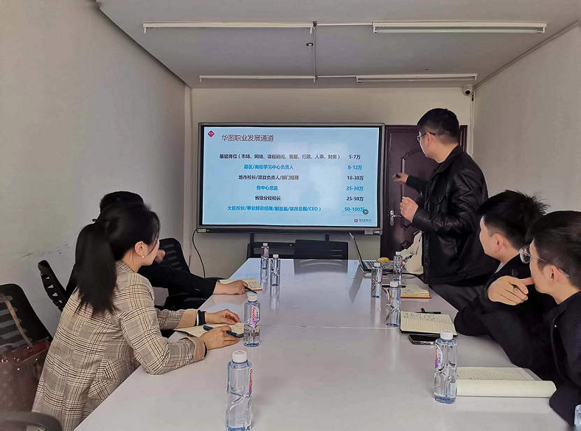 贾书记一行来到郑州华图教育,公司负责人首先对贾书记一行的到来表示欢迎,随后在与我院党委书记贾蓓等人交流中表示,对我院汉语言文学、新闻学及广告学专业的毕业生有较大需求。贾蓓书记首先向其表示感谢,称此次实地走访旨在推动校企深化合作、达成长期合作目标,共同为毕业生就业工作保驾护航。