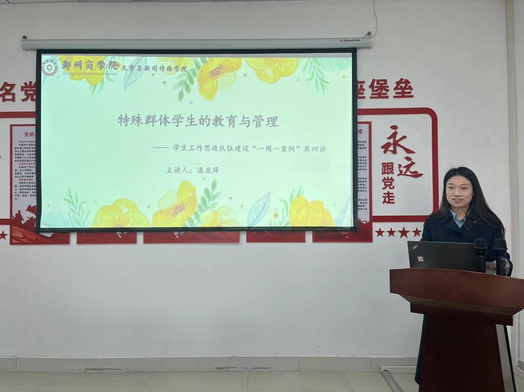 关注特殊学生群体是辅导员开展好学生工作中的一项重要内容,在日常学生工作中如何对特殊学生进行教育与管理是辅导员必备的一项技能。3月21日下午,我院开展了学生工作思政队伍建设“一周一案例”第四讲,本次分享由辅导员潘亚萍老师主讲。