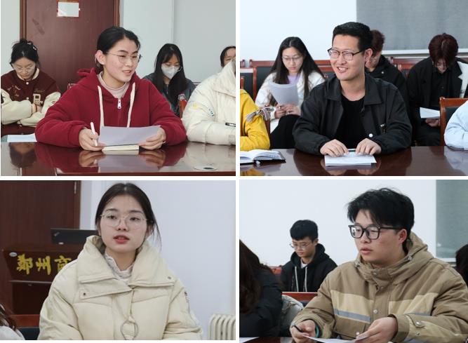 系列师生座谈活动围绕着师生共建高效课堂、推进分层分类教学、专业认识和发展、丰富课余生活等方面进行了讨论交流。文学教研室主任贾海涛老师发表了“教学交互成就高校课堂”的演讲,指出良好的课堂教学效果源于教与学的高效沟通,对于师生共建高效课堂畅谈了自己的感悟;教育学教研室康文涛老师从“紧盯课堂,针对分层分类教学进行教法改革”的角度进行分享,以学前教育专业学习钢琴这一技能举例,详细阐释了分层分类教学改革的相关举措;新传教研室邢振毅老师结合自身经验分享了“用独立思考与自我管理建构四年规划”的演讲,明晰了新闻传播专业在智能技术赋能下面临的挑战与机遇,强调同学们要具备批判性思维与终身学习的能力;法学教研室毛宁老师分享“大学生学习和生活的平衡与处理”的演讲,要求同学们要摒弃知识无用论的消极思想,有目的的开展学习计划,让自己的大学四年不留遗憾。