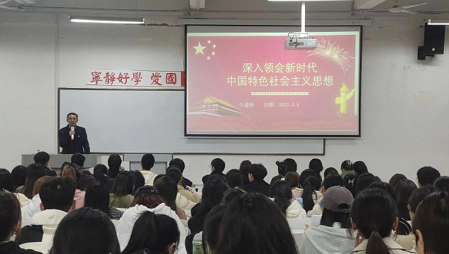 党课第四讲由我院学生第二党支部书记牛道恒老师主讲,他以“深入领会习近平新时代中国特色社会主义思想”为主题从“习近平新时代中国特色社会主义思想的基本内涵和基本方略、习近平新时代中国特色社会主义思想的时代意义、习近平新时代中国特色社会主义思想的理论意义、习近平新时代中国特色社会主义思想的实践意义、习近平新时代中国特色社会主义思想的世界意义”五个方面展开讲述,深入浅出地阐述了习近平新时代中国特色社会主义思想的基本精神、基本内容、基本要求,有助于入党积极分子更加深入学习领会党的创新理论,不断提高学习贯彻自觉性坚定性。