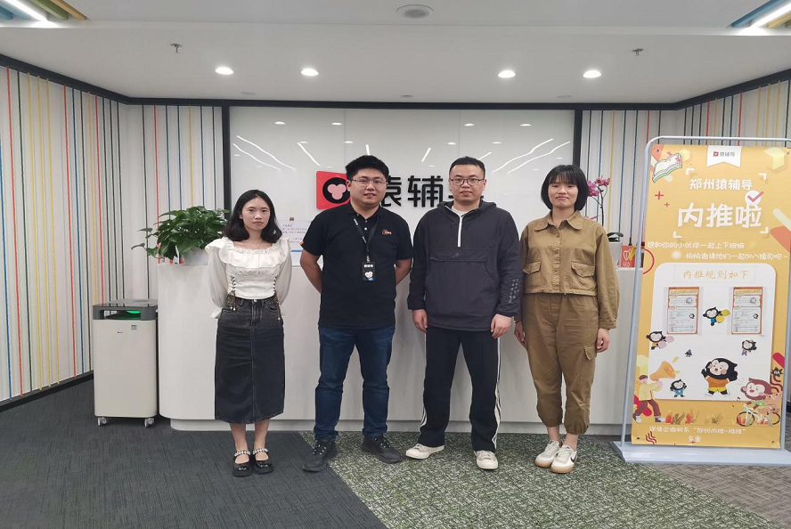 为切实做好毕业生就业服务工作,4月18日,我院就业专员王凯文、辅导员赵璐及唐帅菲老师,三人共赴郑州猿辅导信息科技有限公司进行实地走访交流。郑州猿辅导信息科技有限公司招聘经理白靖川陪同。