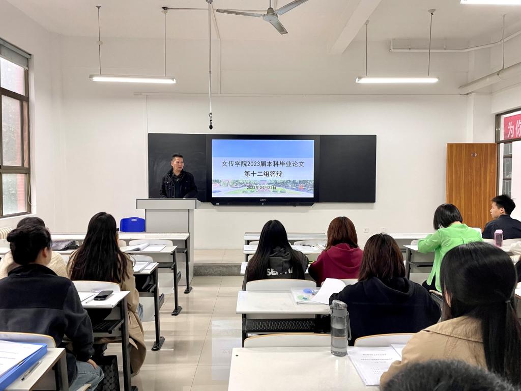 毕业论文(设计)是人才培养方案规定的综合性实践教学重要环节。根据学校答辩工作的整体要求,结合我院本学期相关工作安排,成立文传学院本科毕业论文答辩委员会,于4月22日在自力楼举行2023届本科毕业生论文答辩,出席此次答辩的有各位论文指导老师以及2019级全体答辩学生。