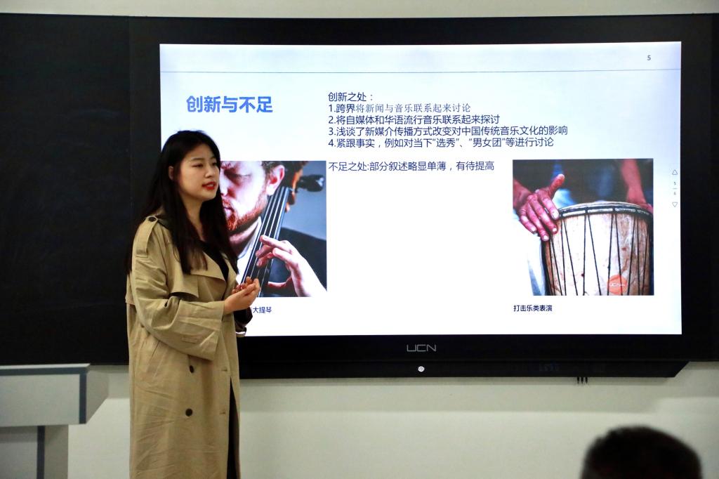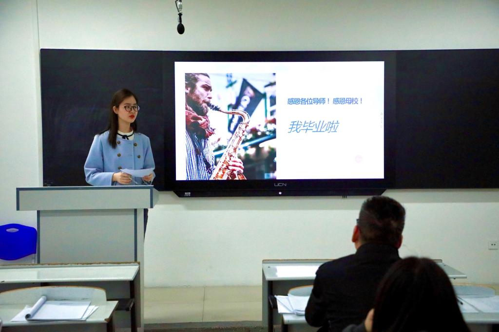 答辩过程分为论文现场陈述和答辩委员会老师提问两个环节,即参加答辩的同学结合PPT先对自己的论文从基本论点、论据、创新性、结论等方面进行陈述,陈述完毕,由答辩委员会老师根据学生的论文提出问题,同学们现场进行回答。答辩小组秘书针对老师提问和学生回答做好详细记录。这不仅考验了同学们对论文的熟悉程度和对专业知识的掌握程度,同时也考验了同学们的应变能力。最后,答辩评委老师根据学生们的回答及表现行进行打分,并指出了学生毕业论文存在的不足,并给予指导性意见。答辩过程中,各答辩现场气氛严肃而融洽,程序井然有序,学生也从这次答辩中再次对所学专业从学术和创作层面有了更深层次的认知和研究实践能力方面的提高。