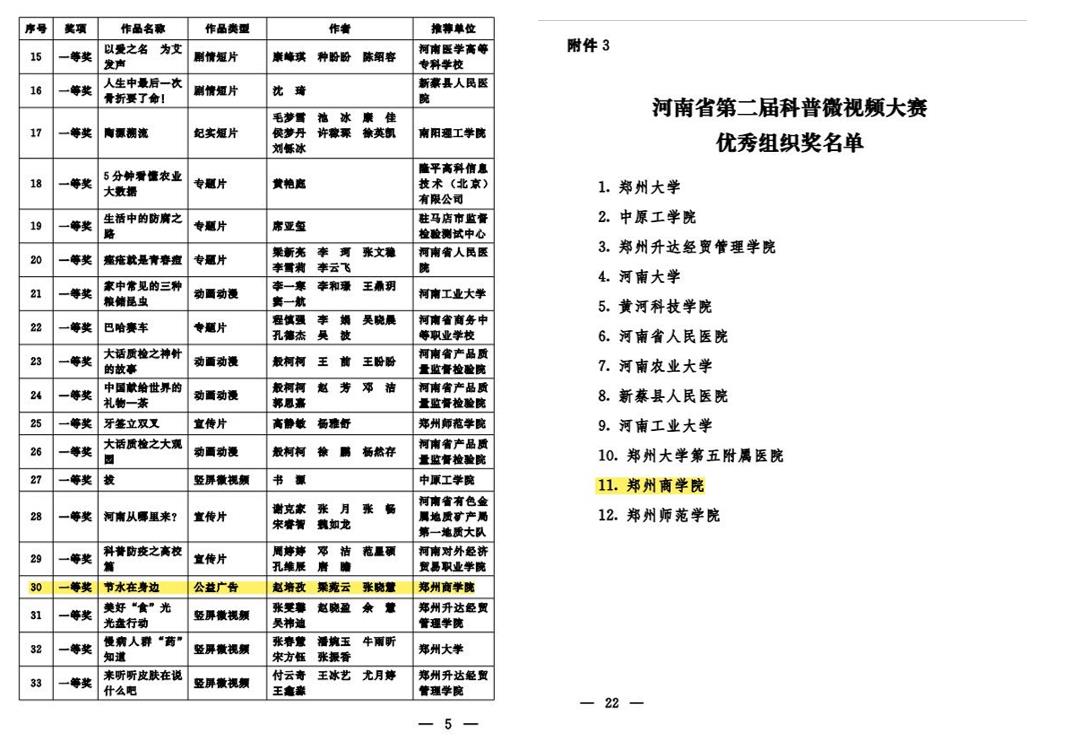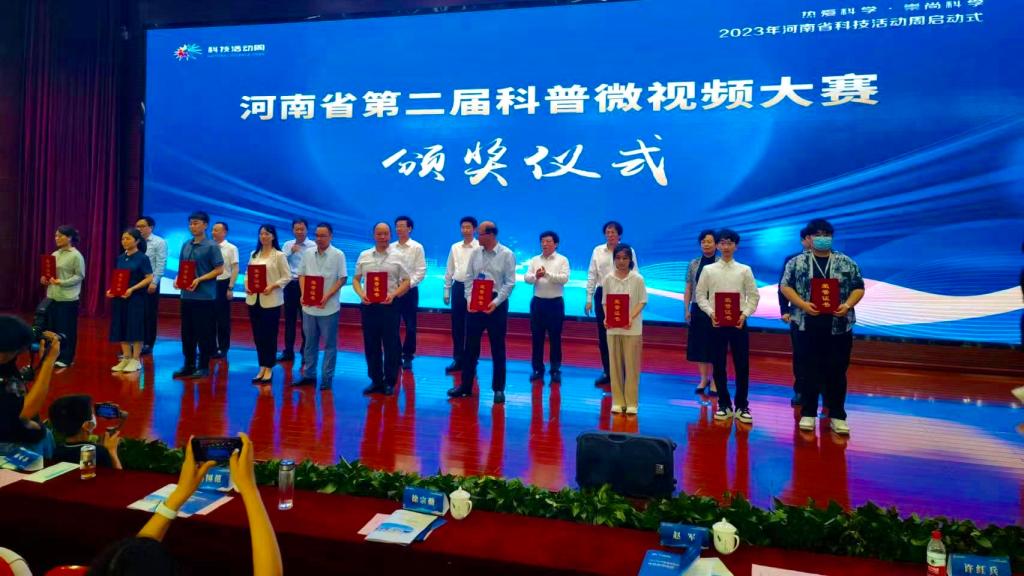近日,河南省科学技术协会发布《关于公布河南省第二届科普微视频大赛评选结果的通知》(豫科协发〔2023〕23号),我院在大赛中斩获佳绩,其中荣获一等奖1项、二等奖1项、三等奖2项、入围奖7项,同时beat365唯一官网被授予优秀组织奖。应河南省科学技术协会邀请,我院选派本次大赛指导教师邢振毅代表学校参加颁奖仪式并出席2023年河南省科技活动周启动式。