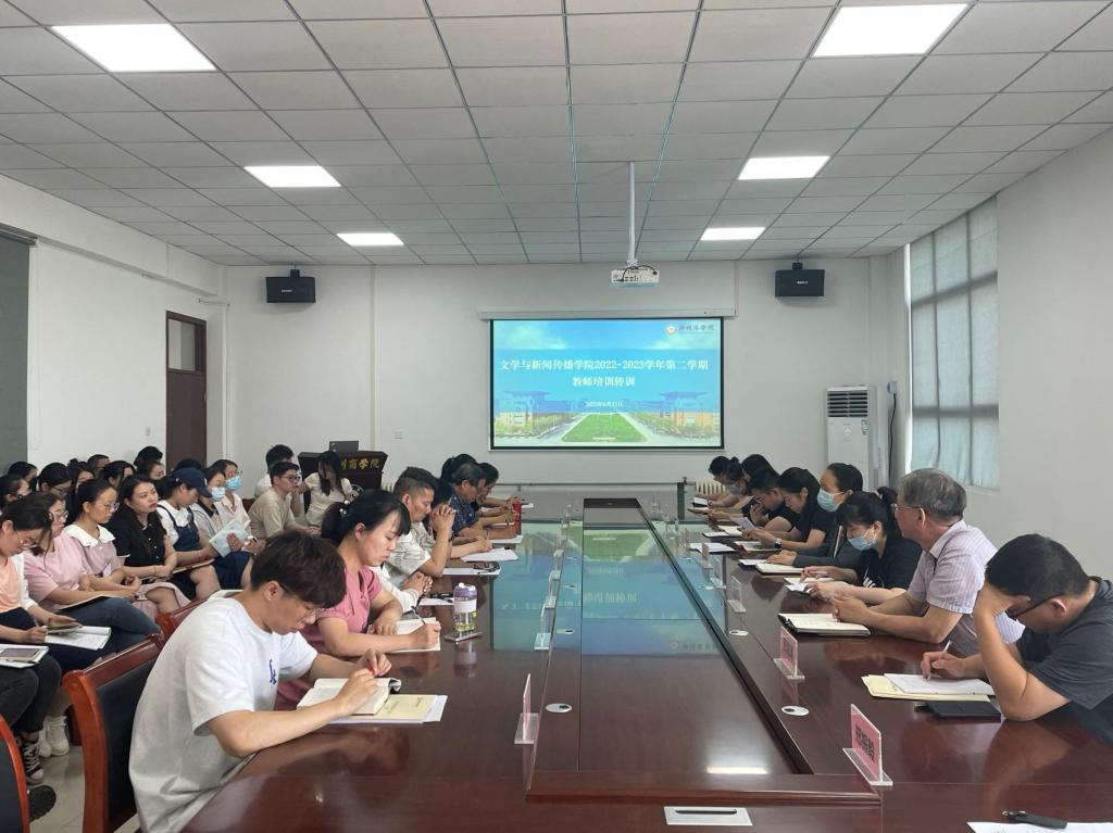 为进一步增强教师培养培训实效,提升教师学科教学能力及各项工作水平,构建科学、规范的教师培养体系,建设一支师德高尚、素质优良的教师队伍,按照本学期教师培养培训工作安排,6月15日下午,文学与新闻传播学院在自力楼216会议室召开教师培训转训会议。我院党委书记贾蓓、副院长张慧以及全体无课教师参会。