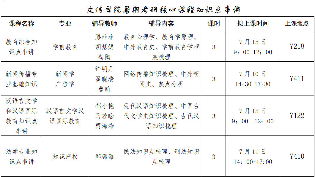 为进一步落实分层分类教学,推动考研工作持续发展,促进考研学生取得优异成绩,7月10-15日,我院组织骨干教师针对各专业考研核心课程进行了知识点串讲,帮助学生巩固基础,强化记忆。![]()