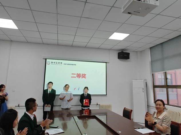 颁奖仪式上,先是马若晗主任代表主办方感谢同学们的积极参与,恭喜各位获奖同学,随后由学生代表一等奖获奖者贺昌旭同学发表获奖感言,并进行才艺展示,彰显了参赛学生的优秀风采。接着由教师代表张红敏老师发言,张老师讲述了推普周活动的举办过程及意义,鼓励大家广泛宣传推普周。随后进行颁奖典礼,王松院长、霍华民教授、张君凤副教授、马若晗主任分别给一等奖、二等奖、三等奖、优秀奖的获奖者颁奖并合影留念。