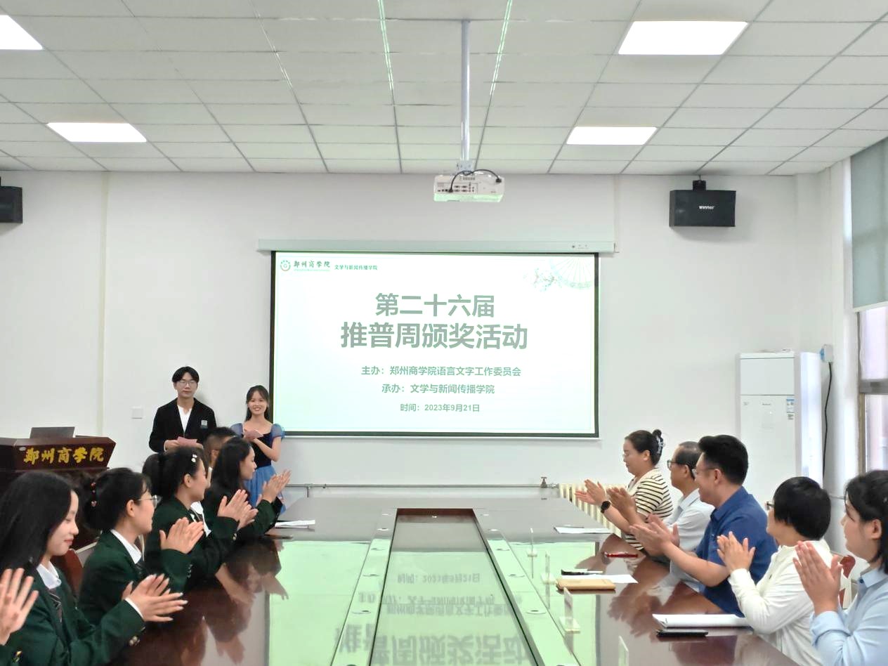 9月21日,推普周颁奖仪式在自力楼206会议室隆重举行。文学与新闻传播学院院长王松、文学教研室主任马若晗、霍华民教授、张君凤副教授、文学教研室无课教师以及获奖选手参与本次颁奖活动。