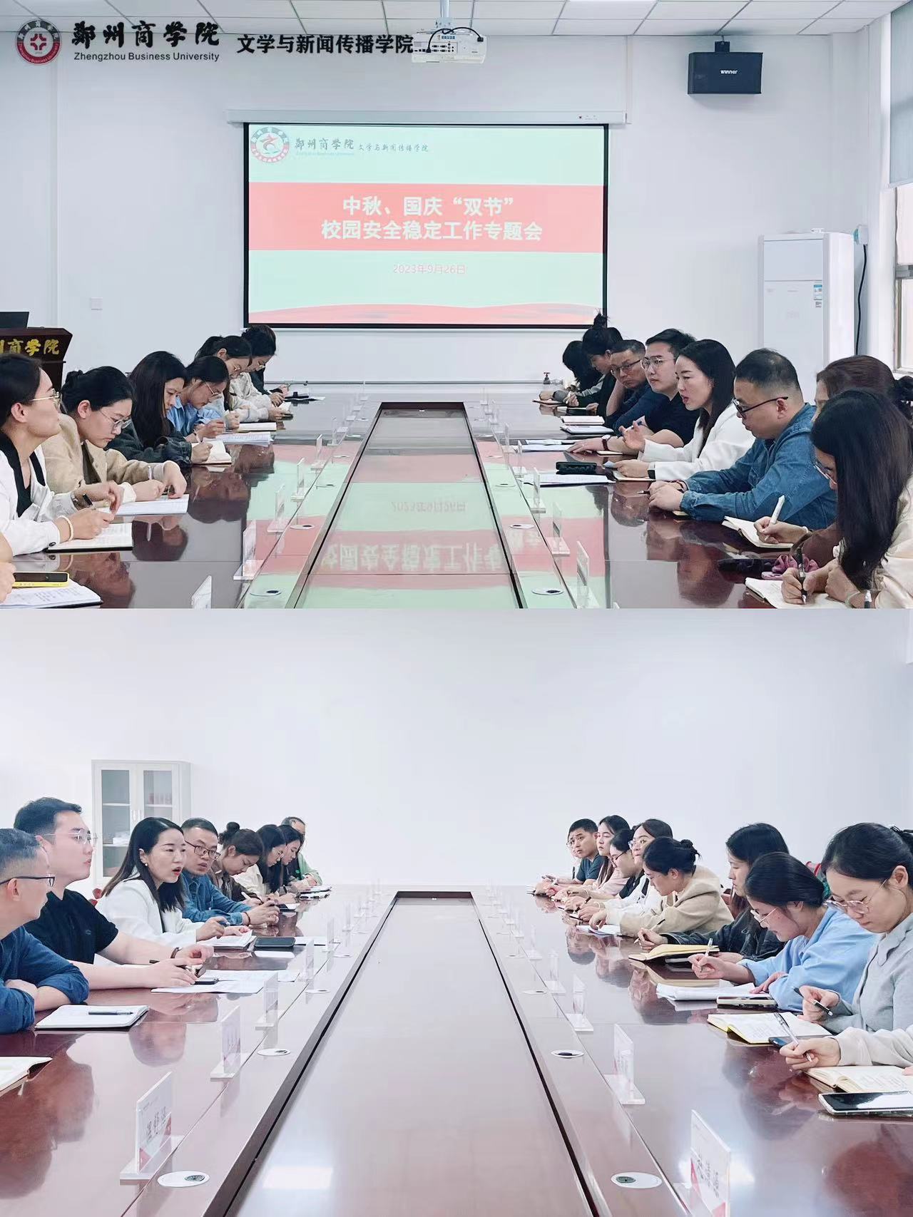 为落实中秋、国庆“双节”假期学生安全稳定工作,9月26日下午,文传学院召开中秋、国庆“双节”校园安全稳定工作专题会,文传学院党委书记贾蓓、团委书记王凯及全体辅导员参会。