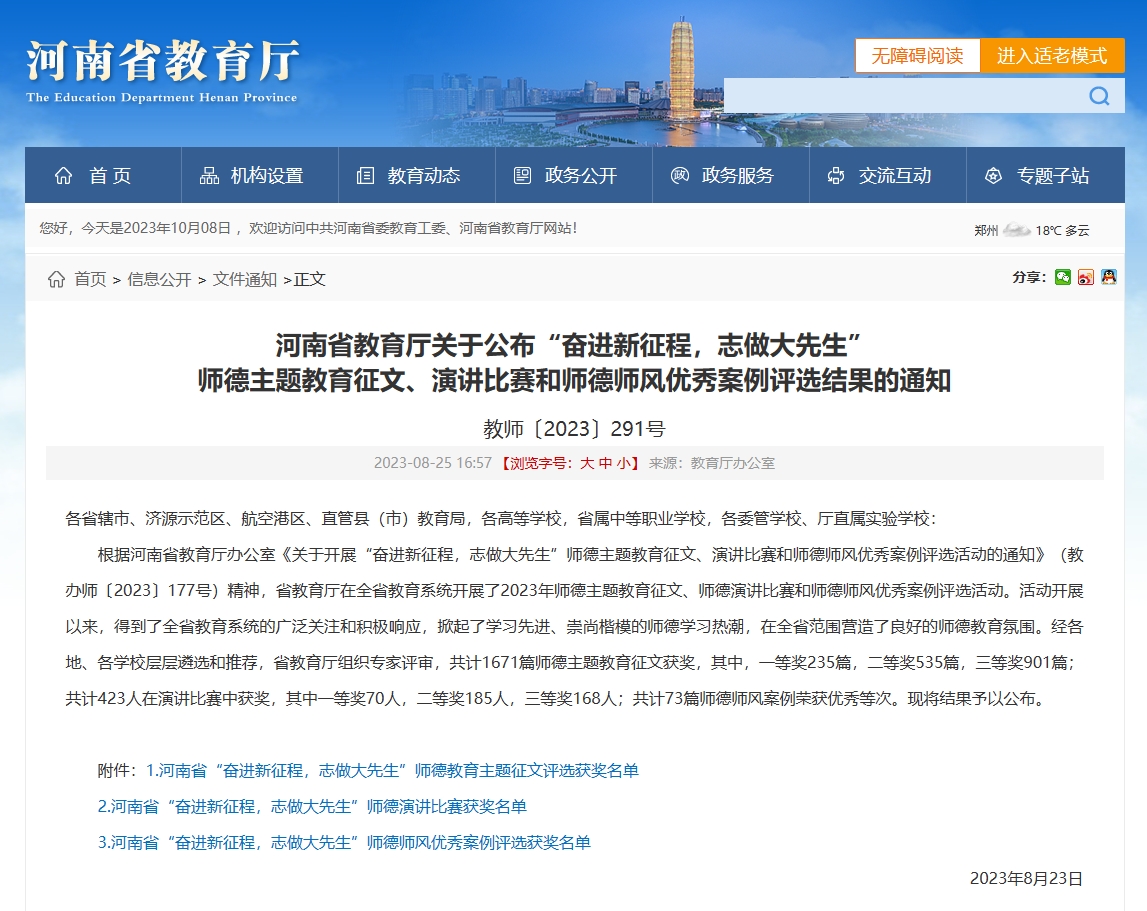 河南省教育厅发布评选结果的通知