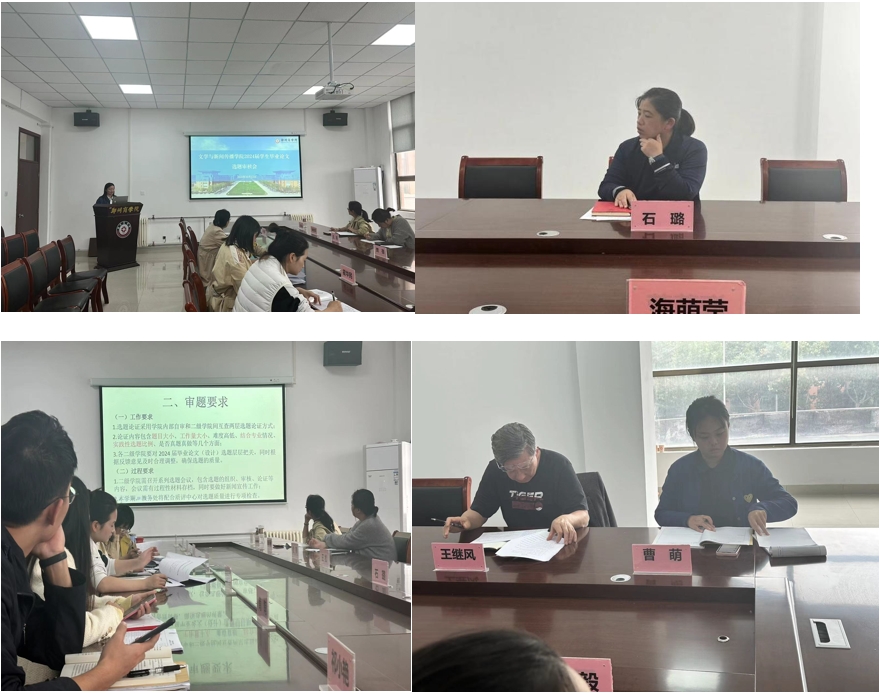 我院2024届本科毕业论文选题审核论证会,突出问题导向,在2024届毕业论文选题的自查和质量专项检查中,对标对表高质量开展,守牢2024届毕业论文质量红线。